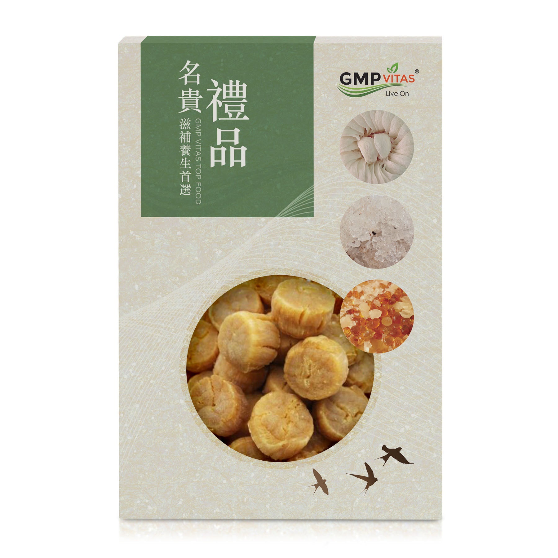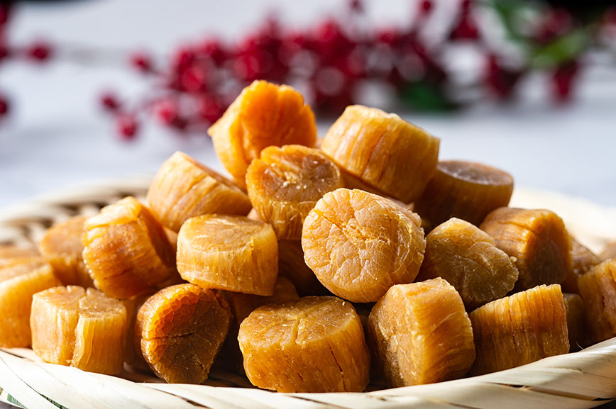 日本大号干贝为每磅75-85颗. 直径近1 inch。生长年份久,营养丰富。蛋白质含量高达61.8%,为鸡肉、牛肉、鲜虾的3倍。并含有丰富的矿物质,能预防动脉硬化,降低胆固醇等功效。