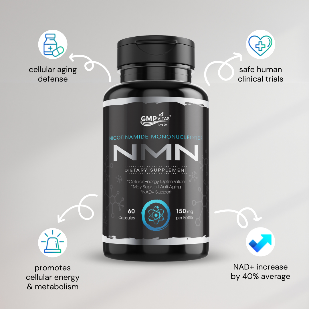 GMP VitasĀ® NMN (Nicotinamide Mononucleotide) is a high-purity dietary supplement designed to support healthy aging and cellular energy production. NMN is a direct precursor to NAD+ (Nicotinamide Adenine Dinucleotide), a vital coenzyme found in every cell of the body, essential for energy metabolism and mitochondrial function.*