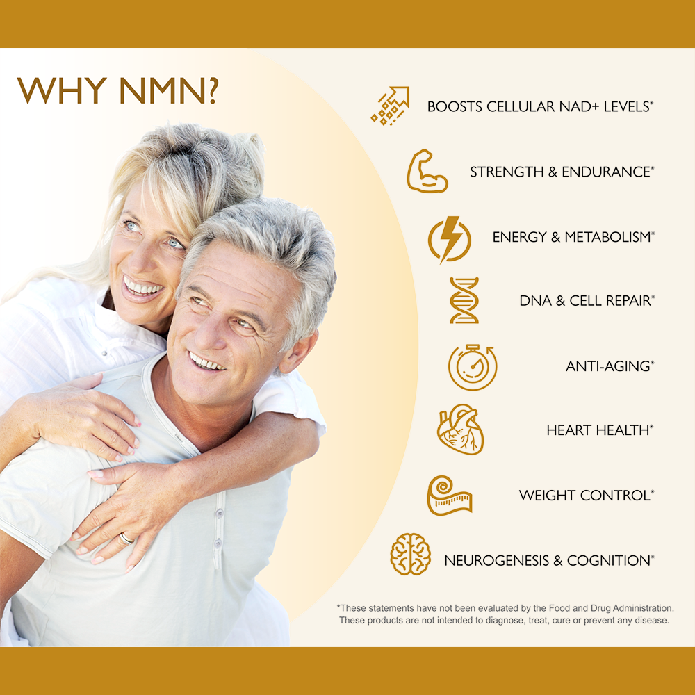 As NAD+ levels naturally decline with age, supplementing with NMN may help support your body's natural NAD+ production—helping you feel more energized, focused, and balanced.*